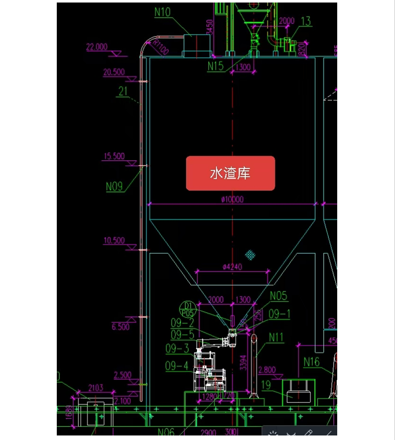 一、项目背景与现状 1、现有五连库配料站水渣库内水渣物料,受物料特性影响,库内物料板结在库内底部6米位置开始,致使库内物料无法正常配料使用。 2、库内直径Φ10米,总高22米,现库内物料堆积位置在11米至17米位置。库底钢锥位置开有400×400mm的人孔门,平台2×2m平台。库顶有700×700mm的上料口。 |
